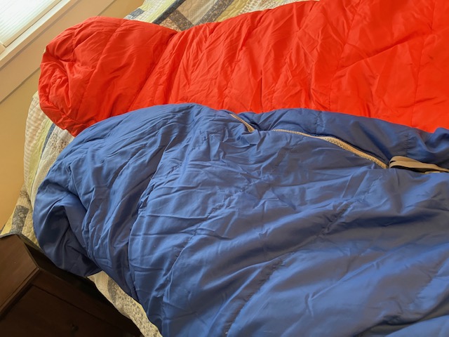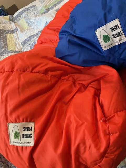 Two used Sierra Designs "mummy" sleeping bags.(not rectangular shaped) Down, and very warm. One long length and one regular length. These two can zip together. $50. each