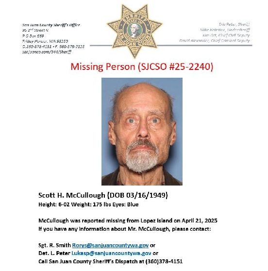 Scott McCullough was reported missing from Lopez Island on April 21, 2025.