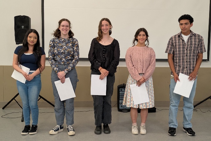 Left to right: Abril Velazco, Beatrix Donohoe, Ruby Ervin-Mclean, Mirabella Velo, Ulises Velazquez-Cerda. Not pictured: Rowdy Spreine (missed ceremony due to late ferry)